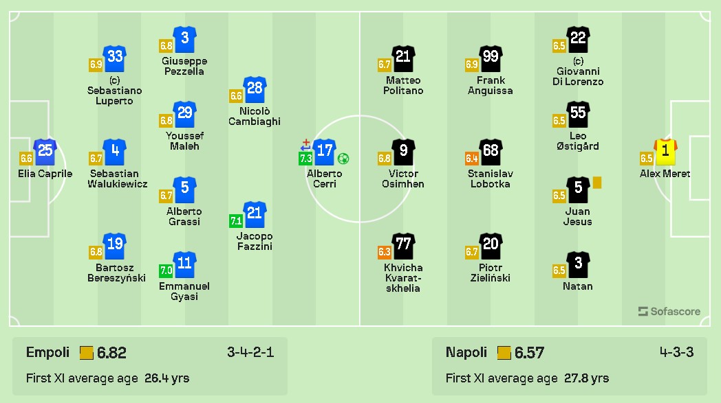 საგულისხმოა ისიც, რომ პირველ ნახევარში ხვიჩა კვარაცხელიას თამაში მოედანზე ყველაზე დაბალი ქულით, კერძოდ კი 6.3-ით შეაფასეს.