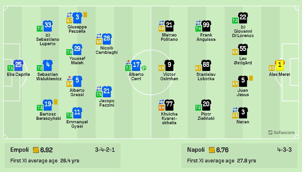 აღსანიშნავია, რომ ხვიჩა კვარაცხელიას ეს შეხვედრა არცთუ ისე კარგი გამოუვიდა და SofaScore-სგან მხოლოდ 6.4 შეფასება მიიღო.