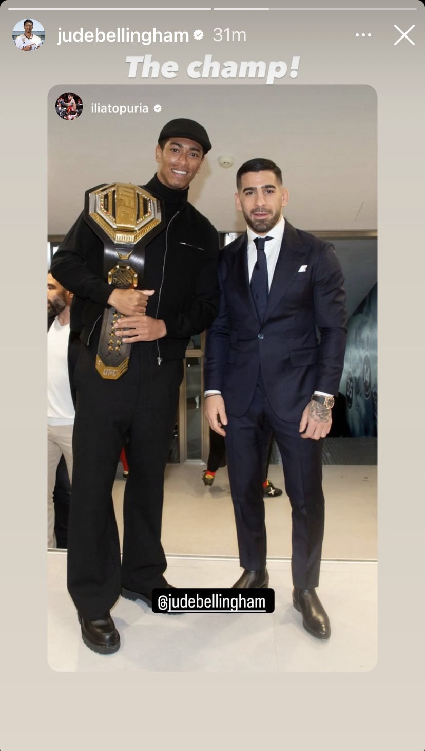 მადრიდის "რეალის" ვარსკვლავი ჯუდ ბელინგემი სოციალურ ქსელში ქართველ UFC-ის ჩემპიონთან, ილია თოფურიასთან ერთად გადაღებულ ფოტოს აქვეყნებს.
