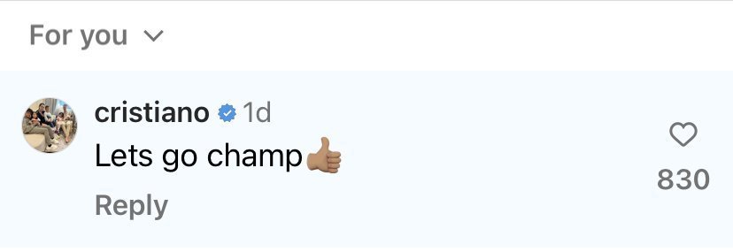 აღნიშნულ პოსტზე კრიშტიანუ რონალდუმ დააკომენტარა: