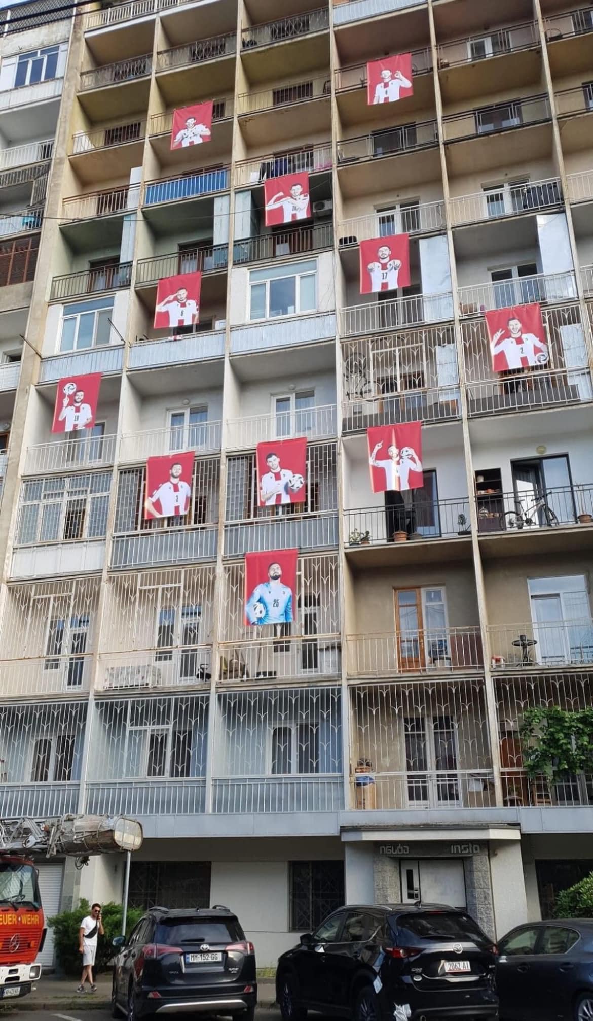 თბილისში ერთ-ერთ კორპუსზე ნაკრების 11-ეული გამოფინეს.