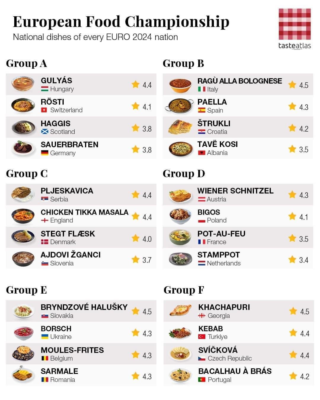 "TasteAtlas"-მა გამოაქვეყნა ევრო 2024-ზე მონაწილე გუნდების ნაციონალური კერძების სია.