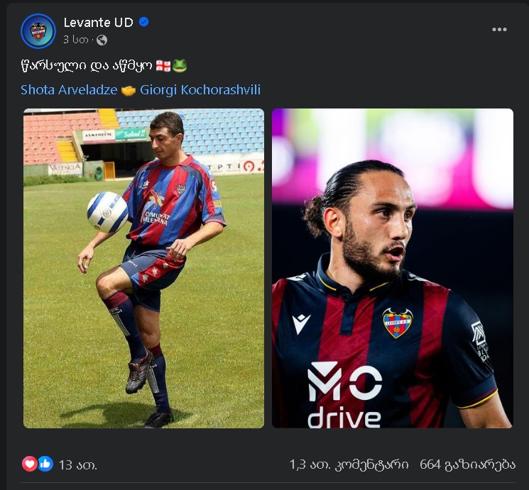 "ლევანტეს" ოფიციალური გვერდის პოსტი შოთა არველაძესა და გიორგი ქოჩორაშვილზე.