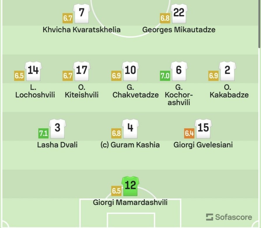 გთავაზობთ ქართველი ფეხბურთელების შეფასებას 45 წუთის შემდეგ.