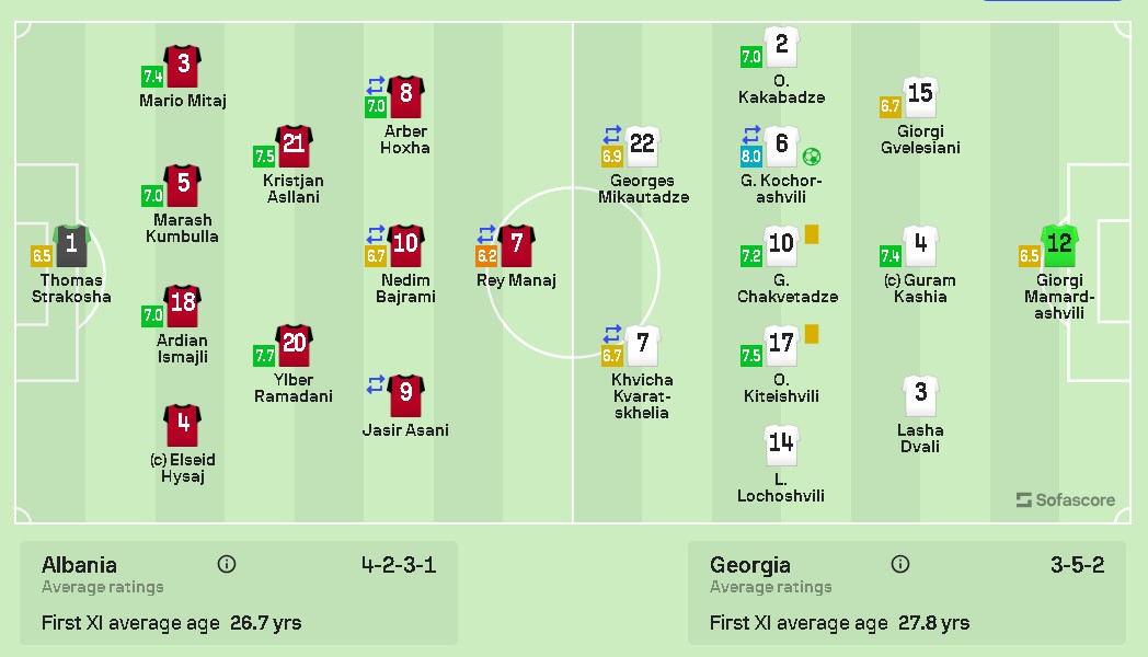 რა შეფასებები მიიღეს ქართველმა ფეხბურთელებმა ალბანეთთან მატჩში