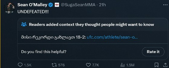 შონ ო'მალის პოსტს 𝕏-მა Community Note დაადო და სიცრუის გავრცელებაში ამხილა.