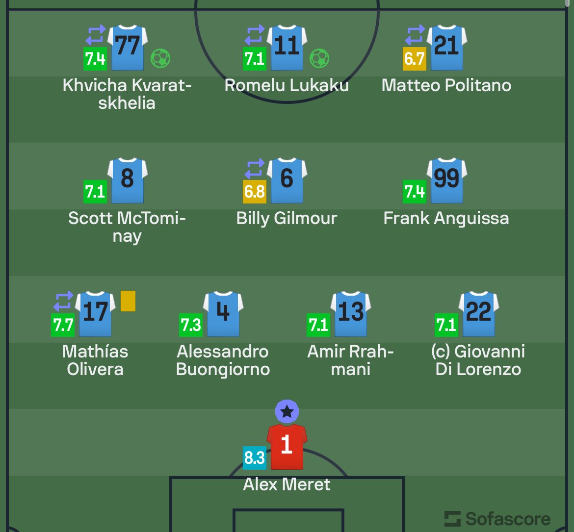 სტუმრებიდან გოლი რომელუ ლუკაკუმა და ხვიჩა კვარაცხელიამ გაიტანა.