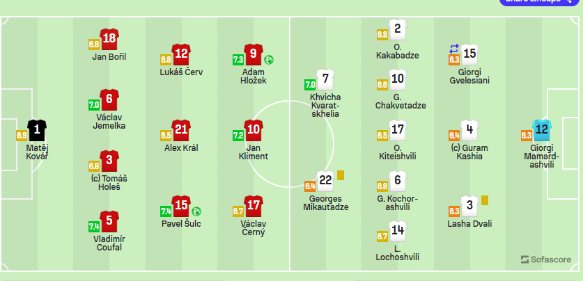 ერთა ლიგის ბოლო ტურში საქართველოს ნაკრებსა და ჩეხეთს შორის გამართული პირველი ტაიმი მასპინძელთა გამარჯვებით 2:0 დასრულდა.