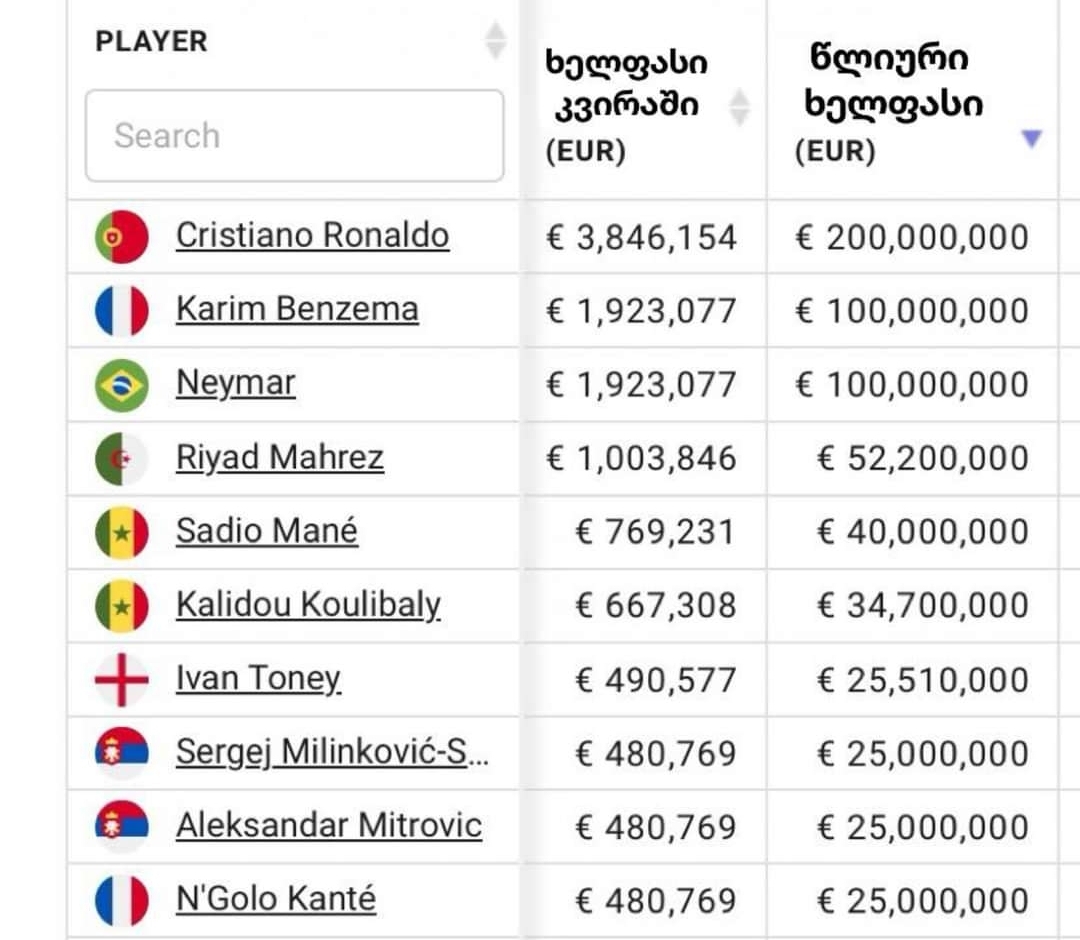 რომელ ადგილზეა რონალდუ? - არაბეთში მოთამაშე ტოპ 10 მაღალანაზღაურებადი ფეხბურთელი