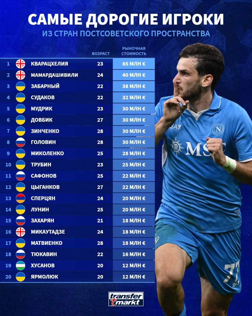 წარმოგიდგენთ პოსტსაბჭოთა სივრცის 20 ყველაზე ძვირადღირებულ ფეხბურთელს:
