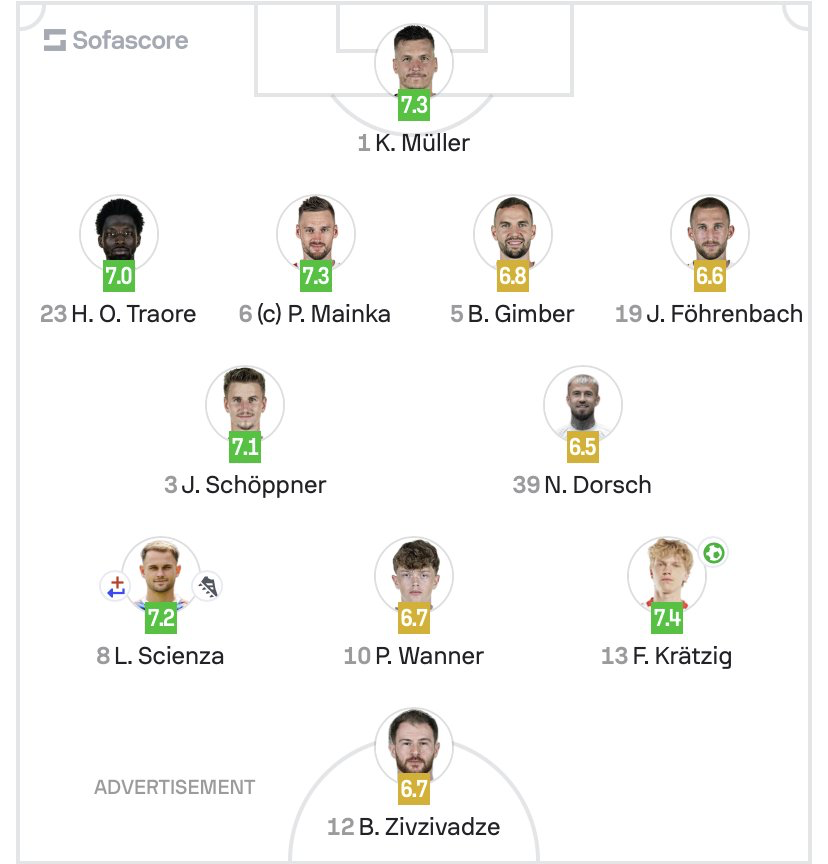 ბუდუ ზივზუვაძემ ბუნდესლიგაში სადებიუტო ტაიმში 6.7 შეფასება დაიმსახურა.