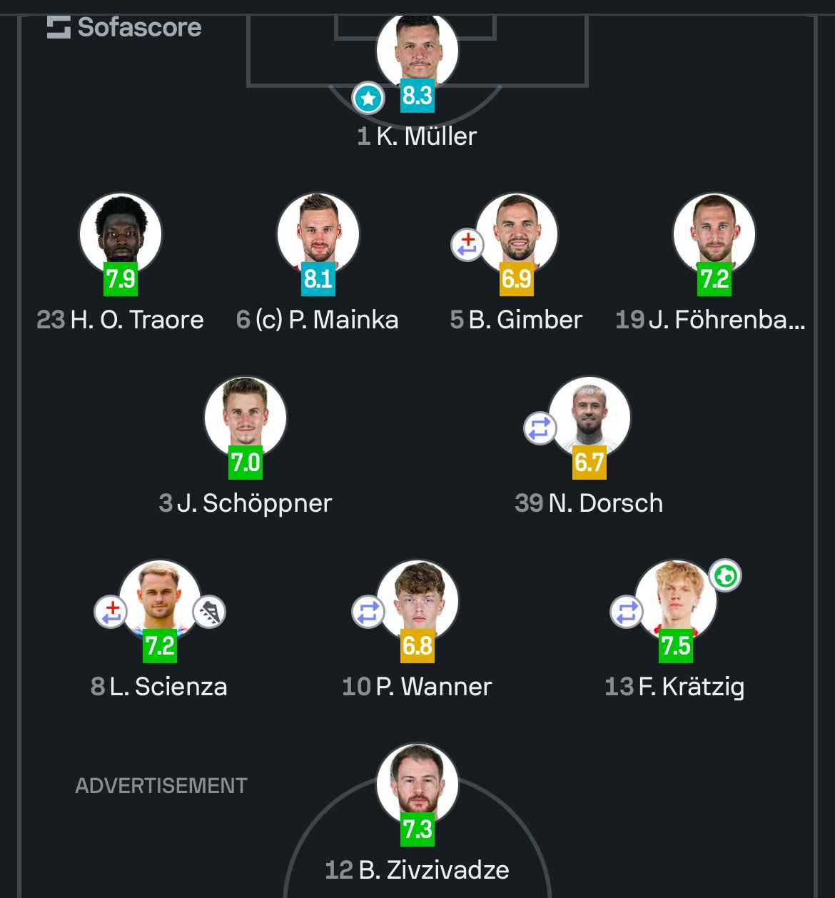 იხილეთ ბუდუ ზივზივაძის შეფასება პირველ ბუნდესლიგურ მატჩში: