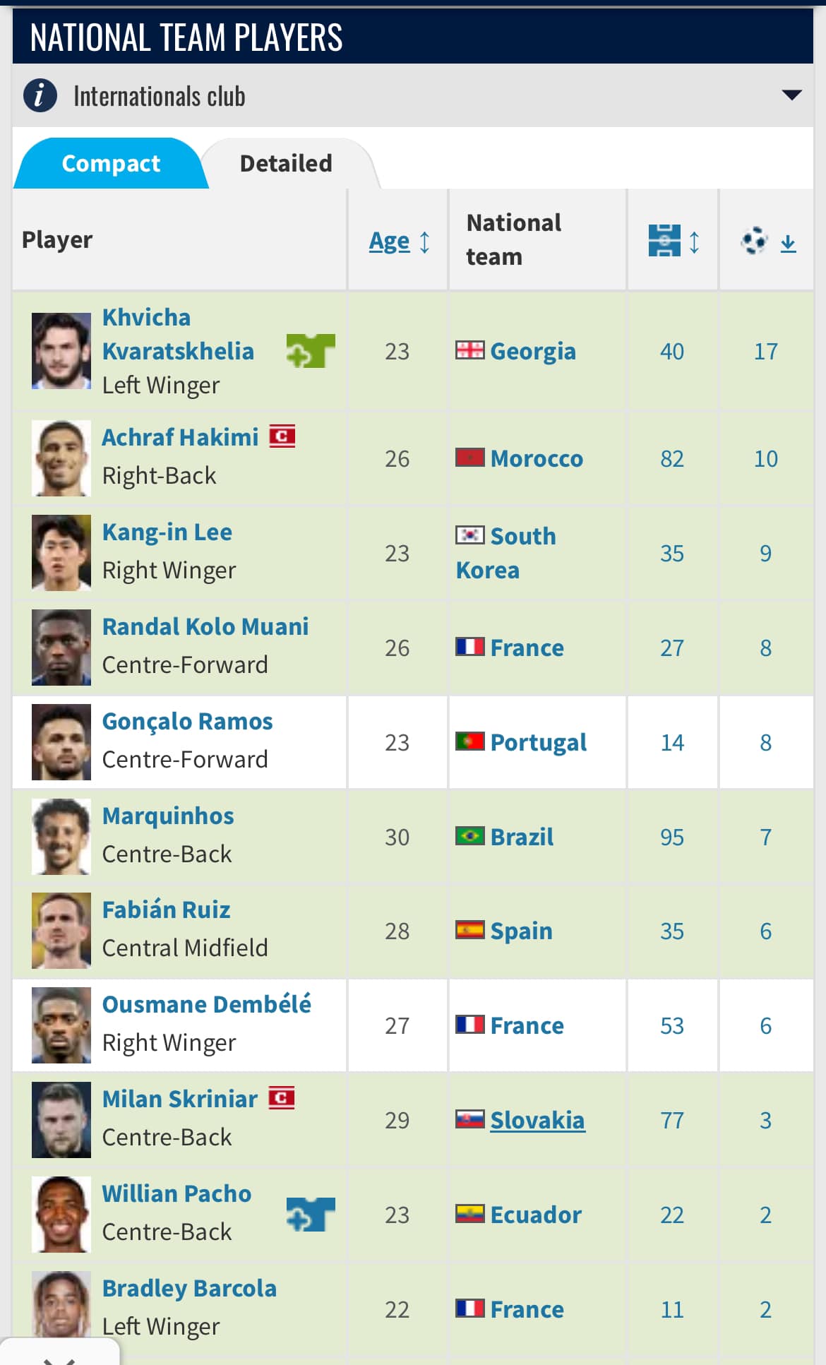 საინტერესოა, რომ პარიზელების ამჟამინდელ შემადგენლობაში ხვიჩა ნაკრებში გატანილი გოლების რაოდენობით პირველ ადგილზეა.