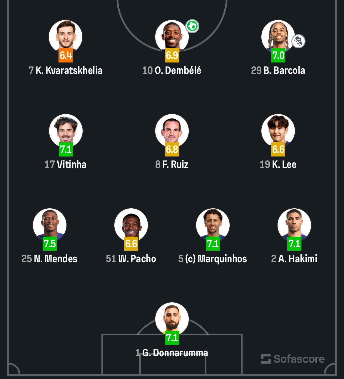 პირველი ტაიმში სტუმრების გამარჯვებით დასრულდა გოლი, კი დემბელემ გაიტანა.