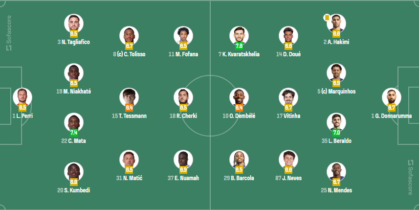 პირველი ტაიმის შემდეგ კვარას შეფასება Sofascore-ზე 7,6 ქულაა, რაც მოედანზე საუკეთესო მაჩვენებელია.