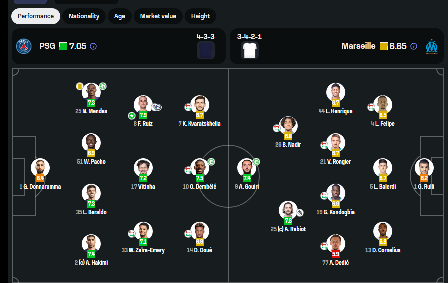 აღსანიშნავია, რომ ამ შეხვედრაში საწყისივე წუთებიდან ითამაშა ხვიჩა კვარაცხელიამ, რომელმაც მოედანზე 78 წუთი გაატარა.