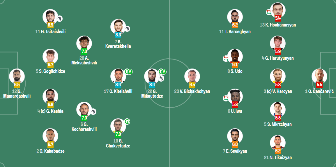 გთავაზობთ ფეხბურთელთა შეფასებებს თამაშის პირველი ტაიმის შემდეგ: