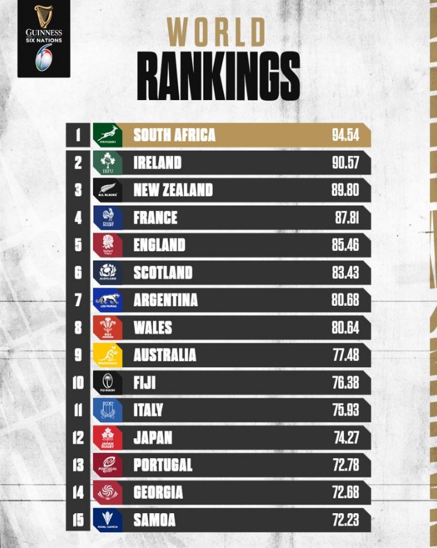 კერძოდ, ფინალსტი ახალი ზელანდია რეიტინგში მესამე ადგილზე დაქვეითდა და მისი ადგილი ირლანდიამ დაიკავა.