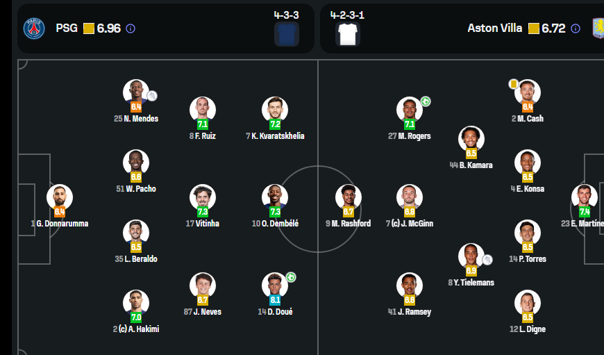 ჩემპიონთა ლიგის 1/4 ფინალში "პარის სენ-ჟერმენისა" და "ასტონ ვილას" მატჩის პირველი ტაიმი ფრედ, 1:1 დასრულდა.