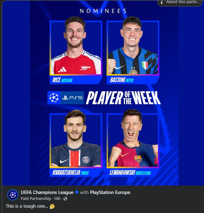 გარდა ამისა, "პსჟ"-ს ახალწვეული ჩემპიონთა ლიგის კვირის საუკეთესო ფეხბურთელის ჯილდოსთვის იბრძოლებს.