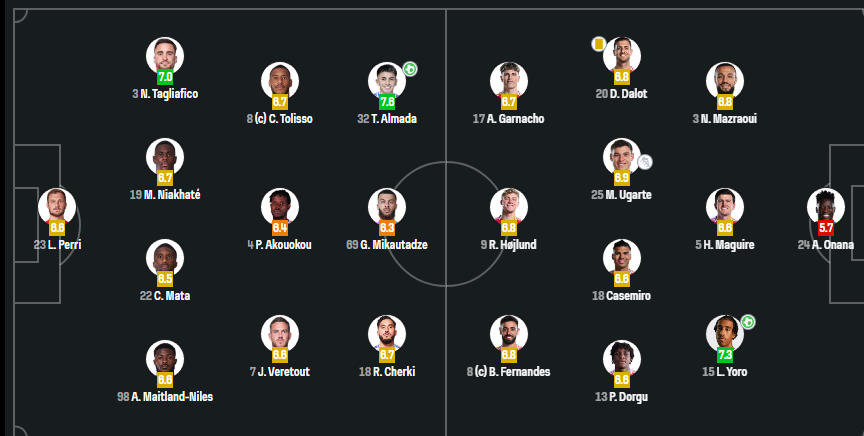 "ლიონისა" და "მანჩესტერ იუნაიტედის" მატჩის პირველი ტაიმი ფრედ, 1:1 დასრულდა.