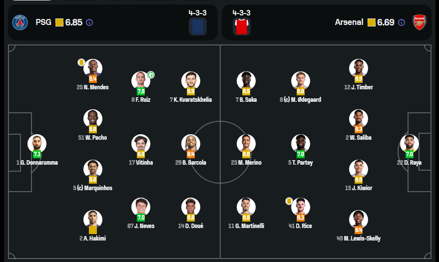 აღსანიშნავია, რომ ხვიჩა კვარაცხელიამ შეხვედრის პირველ ნახევარში 6.9 შეფასება დაიმსახურა.
