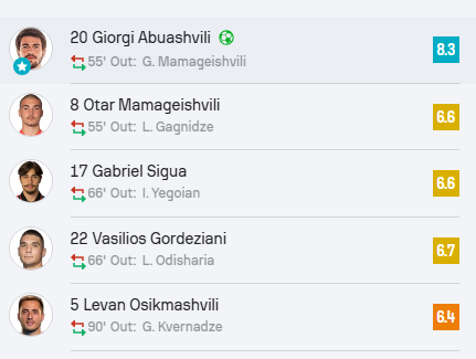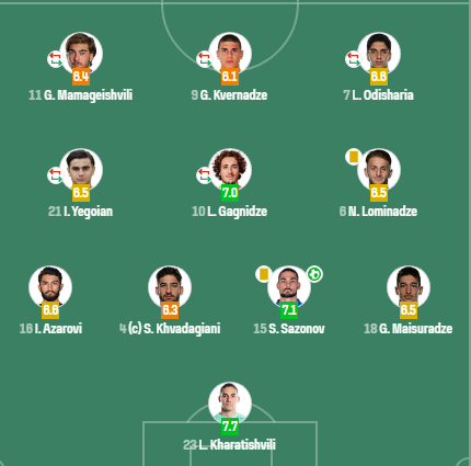 იხილეთ ჩვენი გუნდის შეფასება Sofascore-ის მიხედვით: