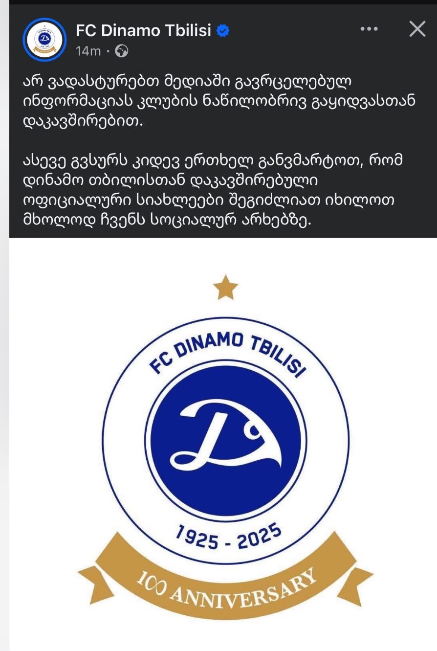 ამასთან დაკავშორებით დინამო თბილისმა ოფიციალურო განცხადება წარადგინა:
