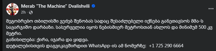 "განიხილება: ქირა, იჯარა და ყიდვა, დეტალებისთვის დაგვიკავშირდით WhatsApp-ის ამ ნომერზე: +1 725 290 6664", - წერს ჩვენი ჩემპიონი.