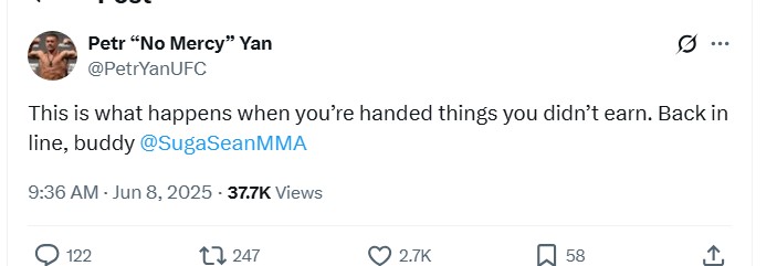 "ესე ხდება, როცა იღებ ისეთ რაღაცებს, რაც არ გეკუტვნის. რიგი დაიკავე, ძმაო", - წერს იანი.