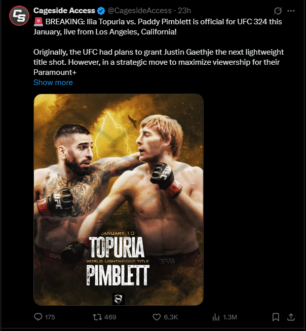 ბუნებრივია, ამ ეტაპისთვის ოფიციალური დეტალები ცნობილი არ არის, მაგრამ თუ გავრცელებულ ცნობებს დავუჯერებთ, ზემოთხსენებული ჩხუბს UFC 324-ზე ლოს ანჯელესში ვიხილავთ.