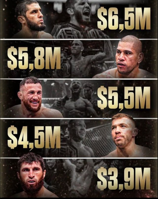 სიის ლიდერი კი UFC-ს ორი წონის ჩემპიონი ისლამ მახაჩევია (6.5 მილიონი აშშ დოლარი).