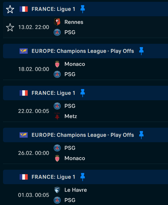 გთავაზობთ პარიზელთა მომდევნო მატჩების კალენდარს: