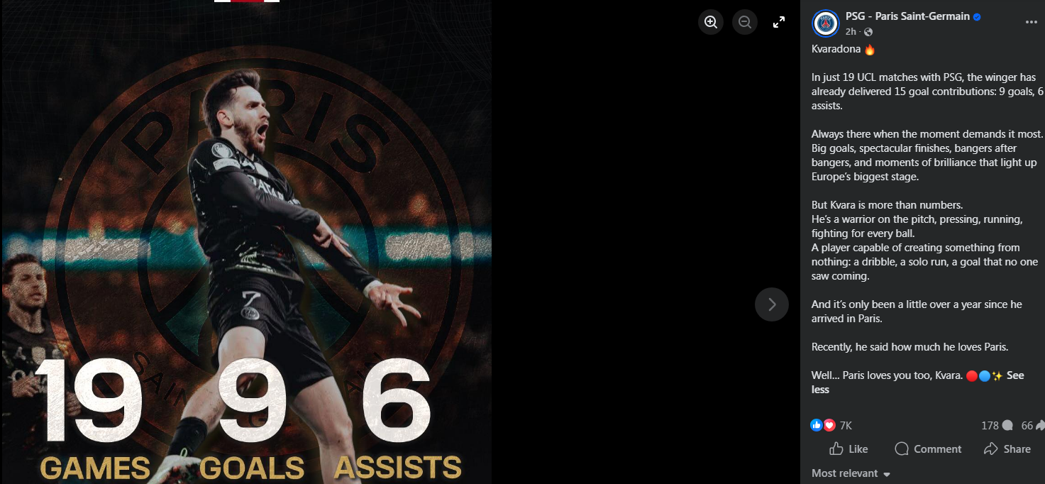 "პსჟ"-მ ხვიჩა კვარაცხელიას სოციალურ ქსელში საინტერესო პოსტი მიუძღვნა.