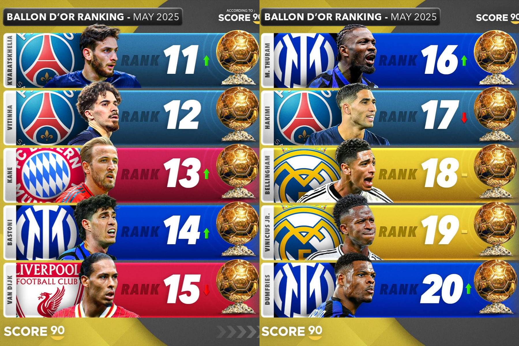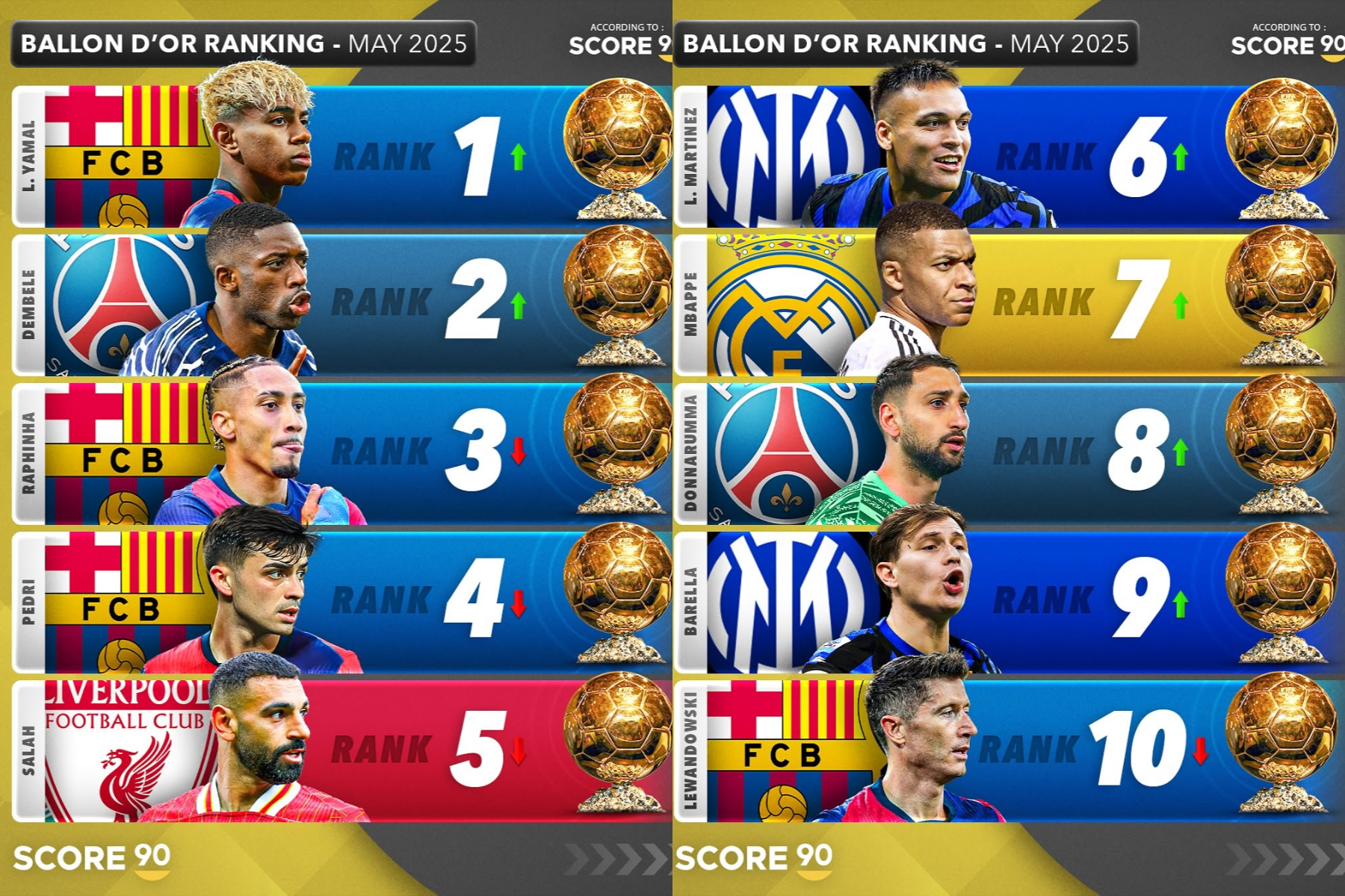 საფეხბურთო გამოცემა "90score"-მა მაისის თვეში ოქროს ბურთის ნომინანტთა სია განაახლა.