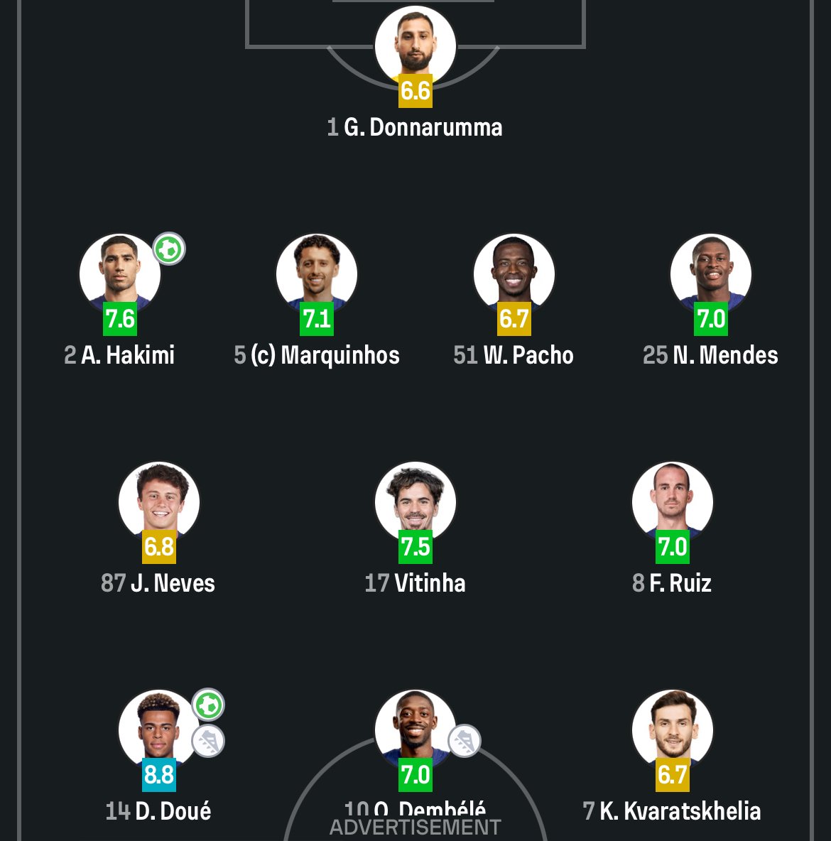 იხილეთ კვარას და პსჟ-ს ფეხბურთელების შეფასება: