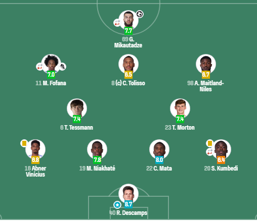 პირველ ტაიმში ქართველმა ფეხბურთელმა, გიორგი მიქაუტაძემ გოლის გატანა შეძლო, რითაც პირველ ტაიმში საუკეთესო შეფასება 7,7 დაიმსახურა.