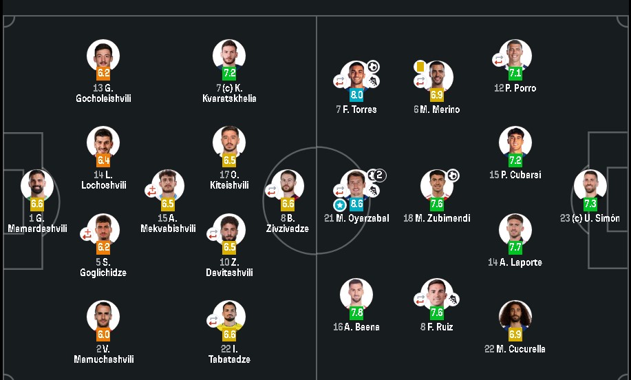 გთავაზობთ ფეხბურთელთა შეფასებებს მატჩის შემდეგ: