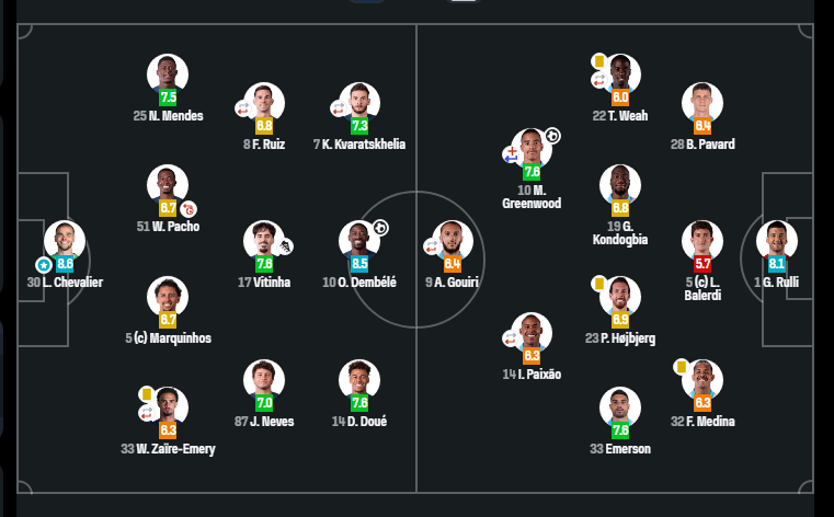 აღსანიშნავია, რომ ხვიჩა კვარაცხელიამ მოედანზე 72 წუთი გაატარა და 7.4 შეფასება დაიმსახურა.