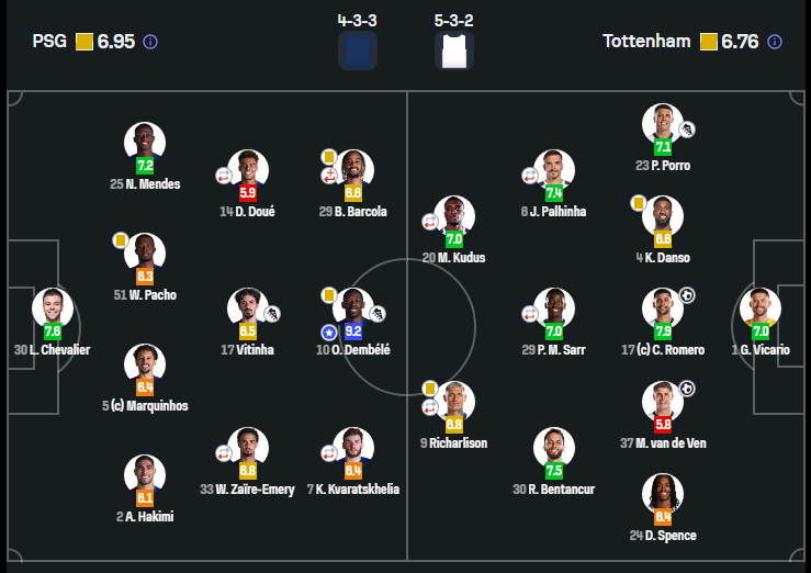 აღსანიშნავია, რომ ხვიჩა კვარაცხელიამ მოედანი მაშინ დატოვა, როცა ფრანგები 2:0-ს მარცხდებობდნენ. SofaScore-მა კი ქართველის თამაში 6.4 ქულით შეაფასა.