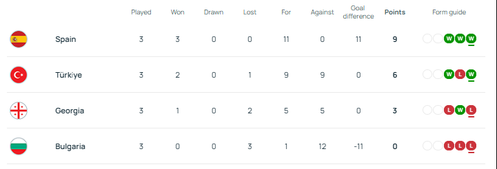 საქართველო ესპანეთთან კი გასვლაზე 2:0 დამარცხა.