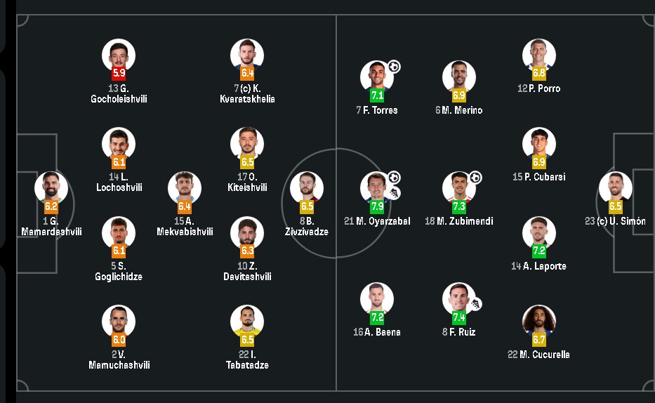გთავაზობთ ფეხბურთელთა შეფასებებს მატჩის შემდეგ: