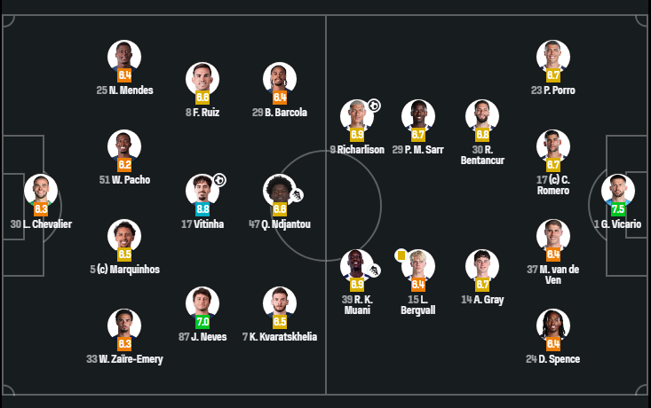 ცნობილია - რა შეფასება მიიღო ხვიჩა კვარაცხელია "ტოტენჰემთან" პირველ ტაიმში